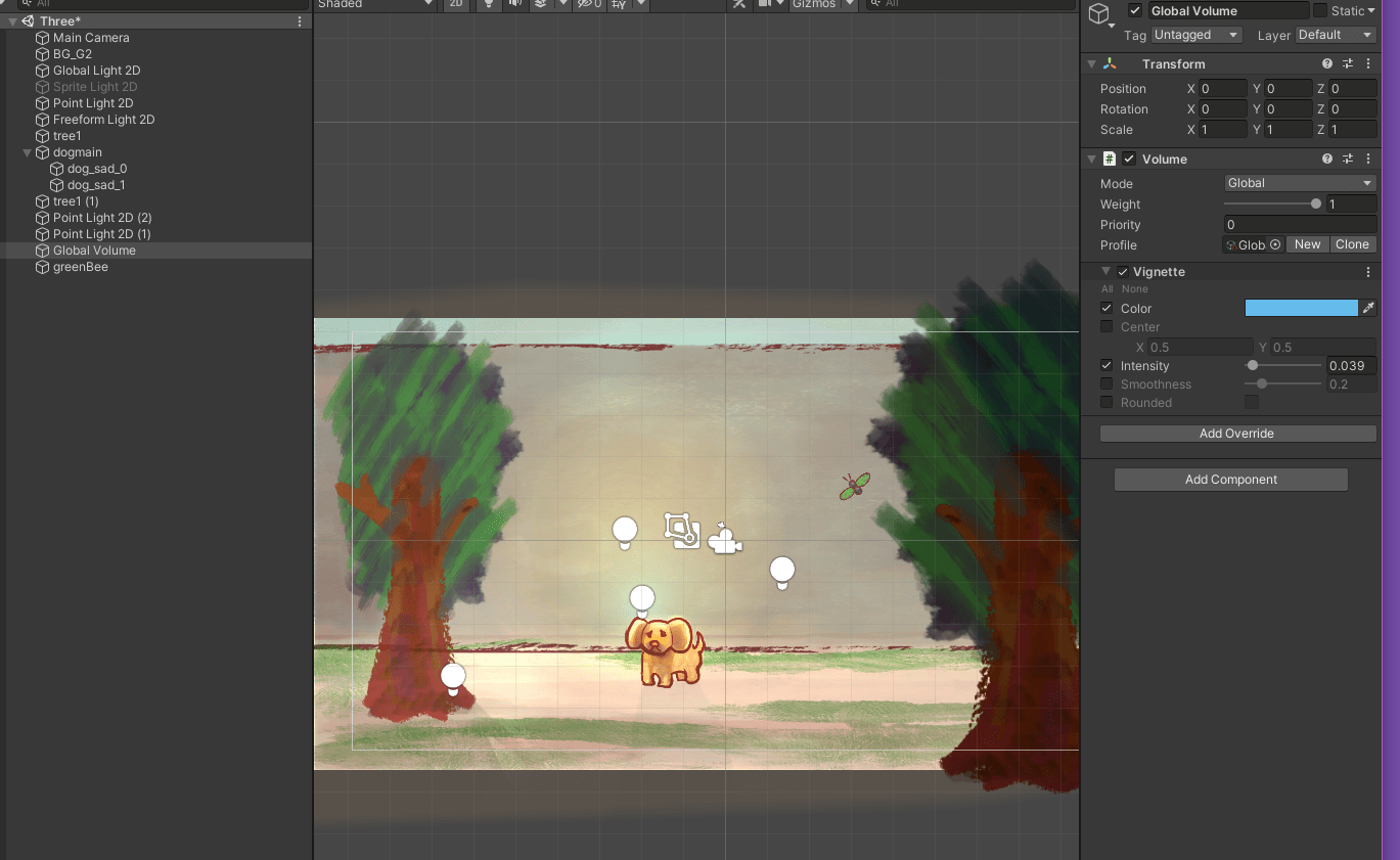 例2:ポストプロセスで何かつけたり^^; Volumeを追加。好きな演出を。