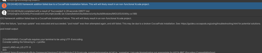 Unity フォーラム CocoaPods installation failure when building for iOS – Unity Forum